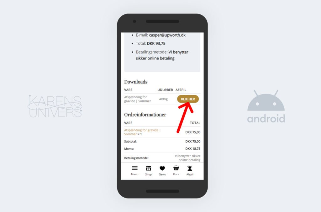 Når du står på produktsiden og ønsker at købe den pågældende lydfil, trykker du på “Tilføj til kurv” knappen.